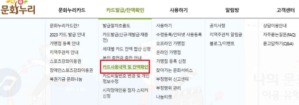 홈페이지 접속 : 문화누리카드 공식 홈페이지 가서 '카드사용내역 및 잔액확인' 클릭!
